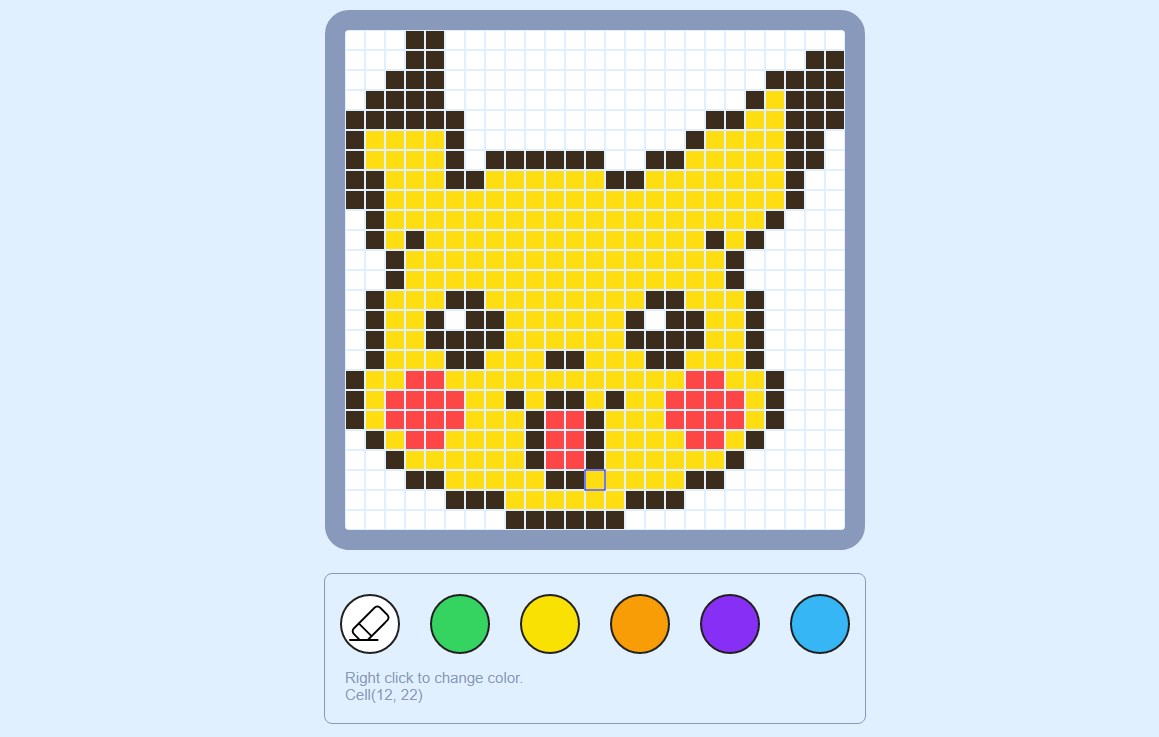 Minecraft Pixel Art Tutorial - Pikachu, I've decided to get back into making pixel art tutorials. Let me know what you guys want to see me make next! This Page. We Have got 9 pix about Easy Cute Pikachu Pixel Art Grid images, photos, pictures, backgrounds, and more. In such page, we additionally have number of images out there. Such as png, jpg, animated gifs, pic art, symbol, blackandwhite, pix, etc. "PIXEL ART in Excel - Making Pikachu", Making Pikachu pixel art using Excel.. "Pixel Art : How to Draw Pikachu", Pikachu from Pokemon with pixels ! MATERIALs in the description MATERIEL dans la description - Le salamèche de Pixy ..